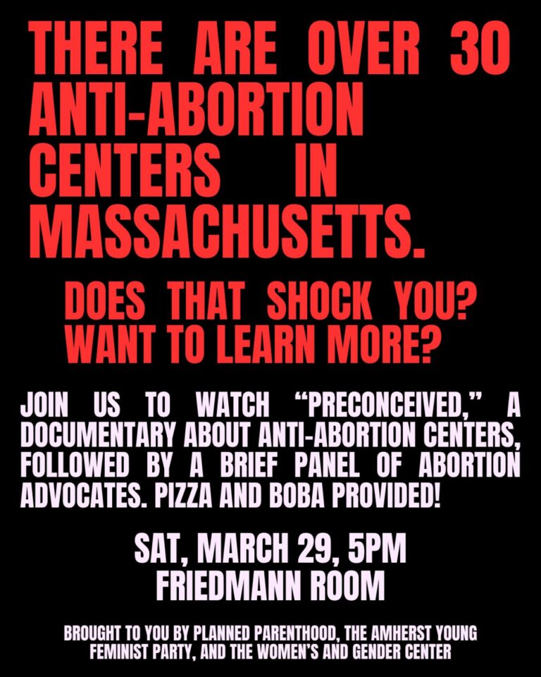 Planned Parenthood, The Amherst Young Feminist Party, and the Women’s and Gender Center will host a screening of Preconceived, a documentary about anti-abortion centers, on Saturday,