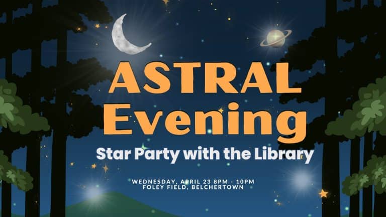 Explore the night sky with telescopes and guidance from Springfield STARS astronomers at Foley Field (66 State St, Belchertown) on Wednesday, April 23, 2025, at 8 PM. Directions:From