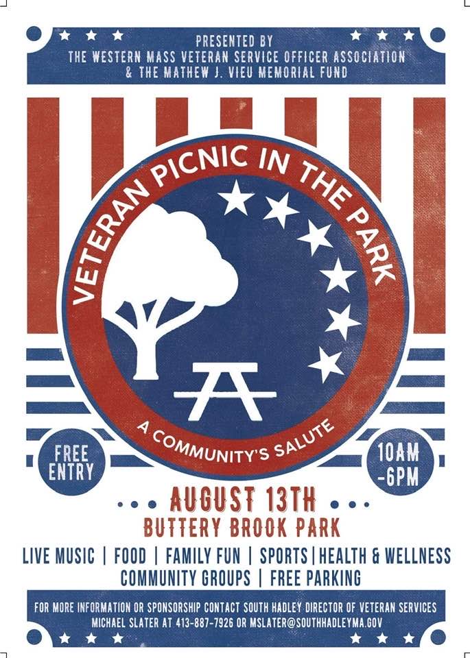 The Western Mass Veteran Service Officer Association and the Mathew J. Vieu Memorial Fund will host a Veteran Picnic on Wednesday, August 13, 2025, from