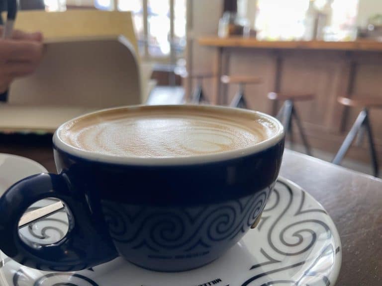 A flat white sits invitingly on a table at Amherst Coffee in Western Massachusetts. It’s a slice of the vibrant coffee culture thriving across the