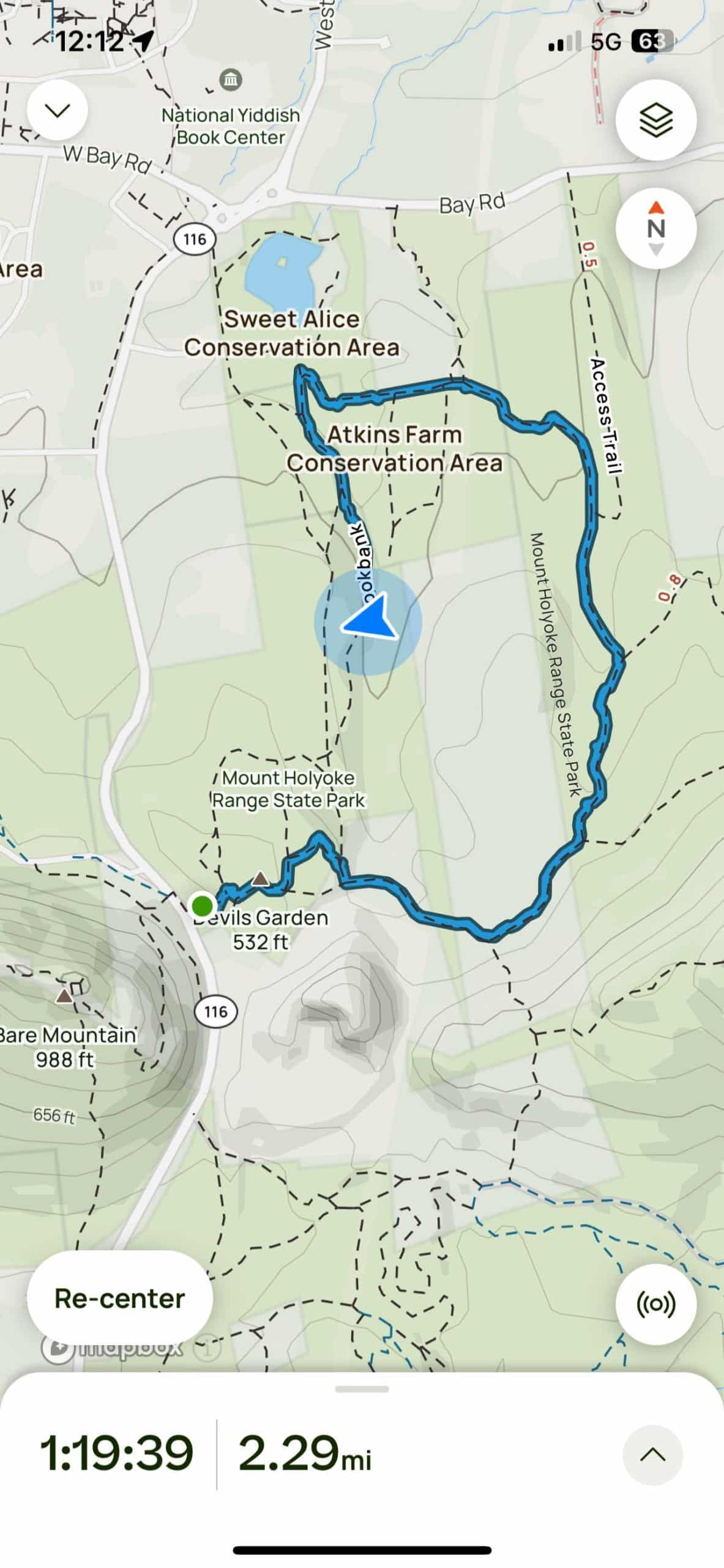 Almost there. A screenshot from the AllTrails app during an Independence Day hike in the Mount Holyoke Range State Park, just south of Amherst.