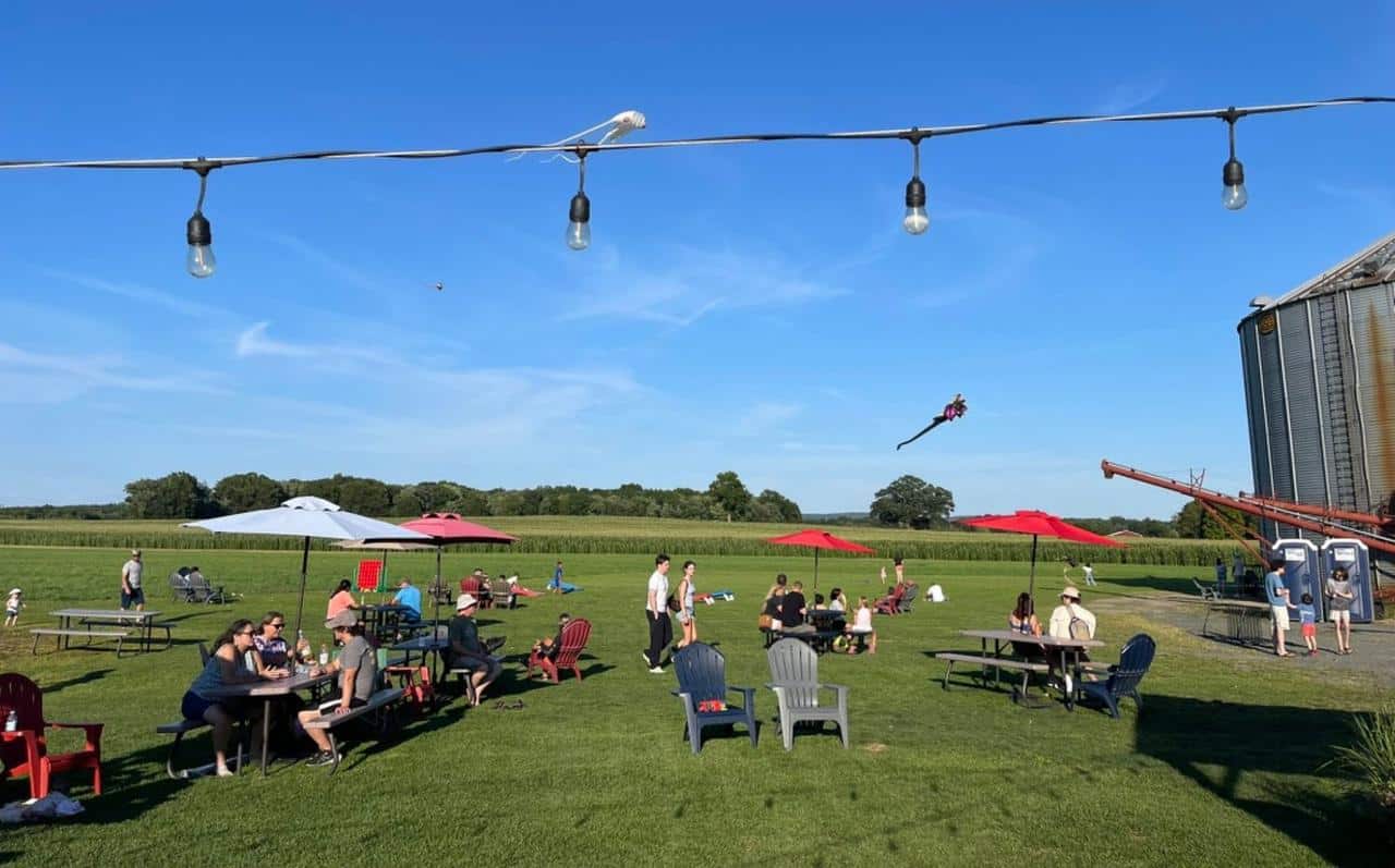 Saturday vibe. Visitors enjoying a summer day at Scoop at the Silos in Hadley, Massachusetts. August 23, 2025.