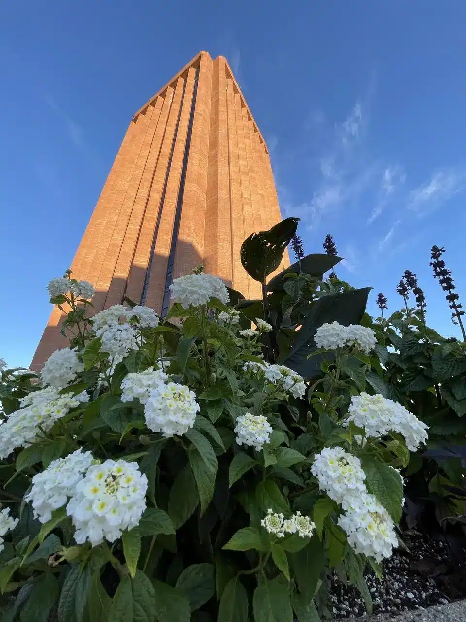 The vibrant lantana flowers, known for their cluster of small, vivid blooms, add a splash of color to the campus’s academic landscape over the summer. These flowers thrive in hot weather and bloom during the warmer months.