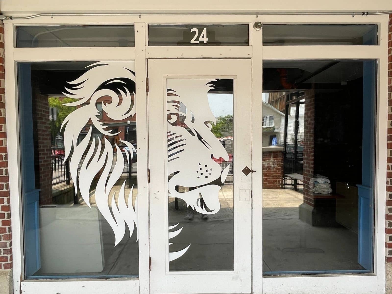 Roar if you will, but don’t die of thirst. Entrance to the White Lion Brewing Company’s taproom in Amherst.