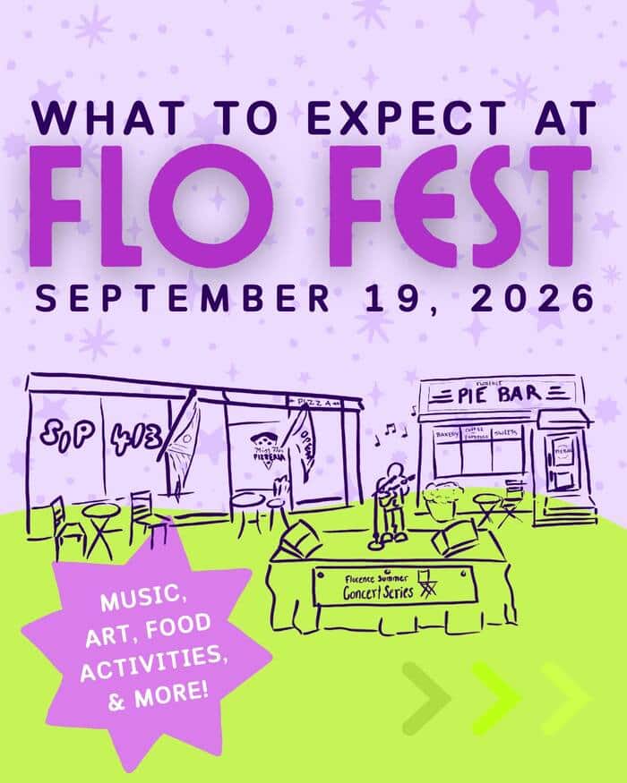Flo Fest, a volunteer-run community celebration, will take place on Saturday, September 19, 2026, on Main Street in Florence. The festival features live music on three stages, interactive art, activities for all ages, and local food, drink, and small businesses. The event is a revival inspired by Florence Night Out and is powered by volunteers. The fundraising goal is $25,000 to support the free festival.