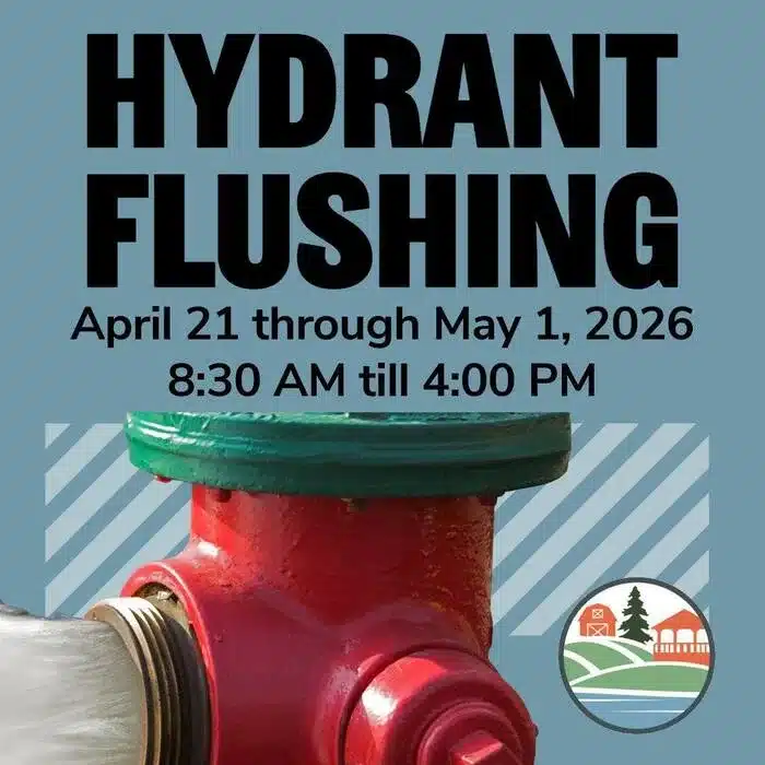 The Belchertown Water District will conduct annual hydrant flushing from Tuesday, April 21, through Friday, May 1, 2026, daily from 8:30 AM to 4:00 PM. Crews will start in the northern part of the district and move south. During flushing, customers may experience rusty or discolored water and lower water pressure; these conditions are normal and temporary. Residents on private wells or other municipal water systems are not affected.